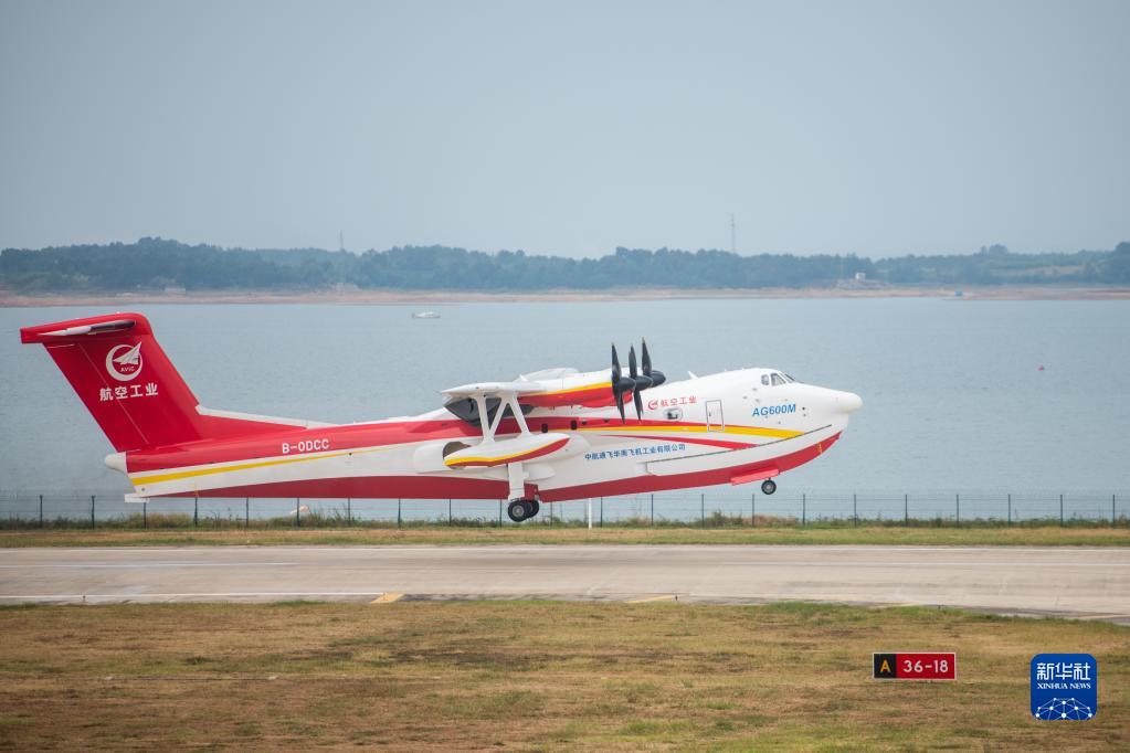 9月27日,“鯤龍”AG600M從漳河機場(chǎng)滑行起飛。
