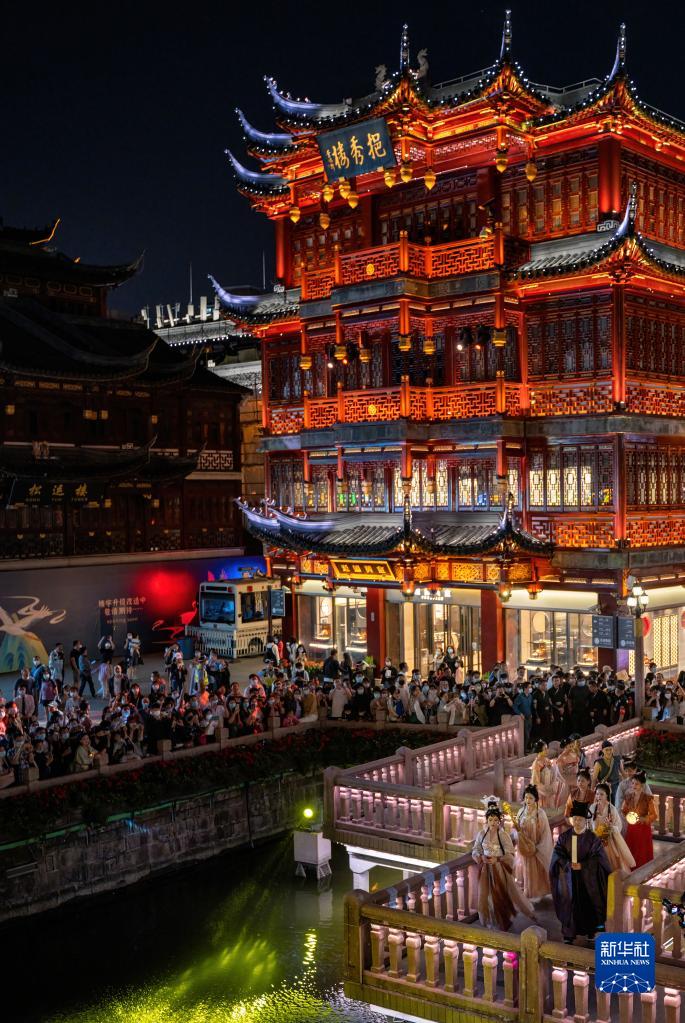 金秋時(shí)節,夜幕降臨的上海豫園商城上演江南仲秋游園場(chǎng)景,給市民和游客帶來(lái)一場(chǎng)浪漫的國風(fēng)沉浸式體驗。