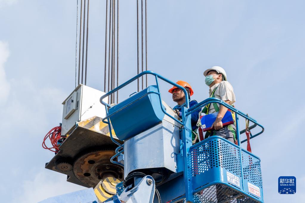 9月7日,在泰國呵叻,中泰鐵路項目部監理四組副組長(cháng)威羅(右)在工作中。