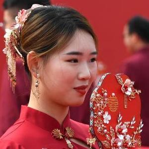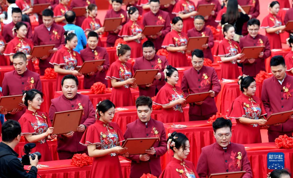 9月27日,新人們在集體婚禮儀式現場(chǎng)。