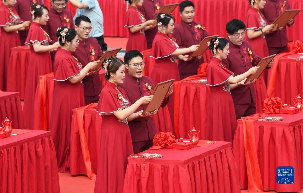 9月27日,新人們在集體婚禮儀式現場(chǎng)。