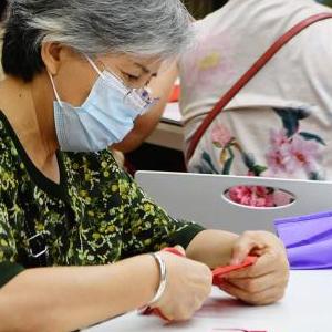 9月27日,在福州市華大街道屏山社區,老人們在學(xué)習剪紙技藝。
