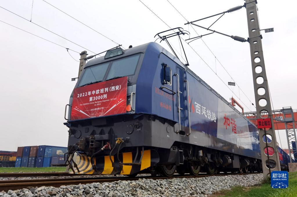 2022年中歐班列長(cháng)安號第3000列在西安國際港站準備發(fā)車(chē)(9月27日攝)。