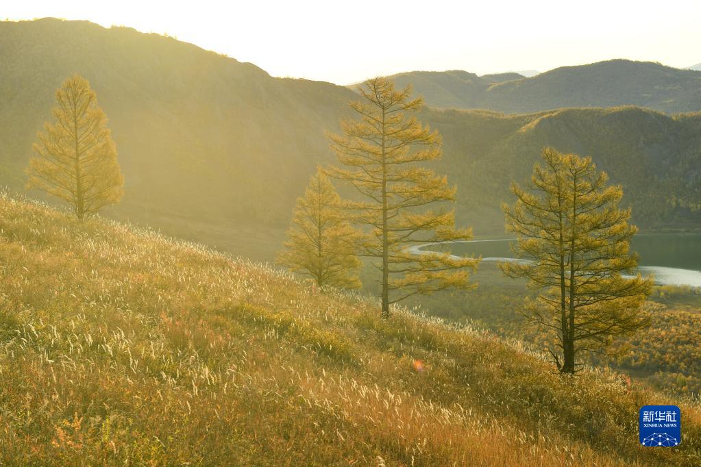 9月28日拍攝的扎蘭屯市柴河鎮同心天池秋日風(fēng)光。
