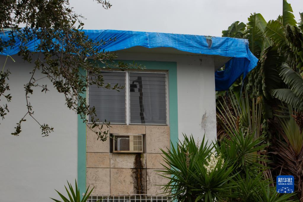 9月27日,在美國佛羅里達州邁阿密,一處建筑用防水材料加固了屋頂。