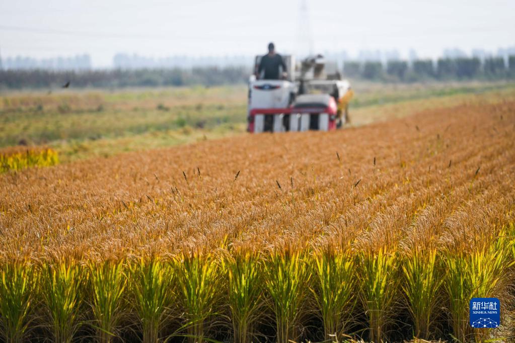 9月28日,河北省唐山市海港經(jīng)濟開(kāi)發(fā)區王灘鎮農民駕駛農機在稻田收割水稻。