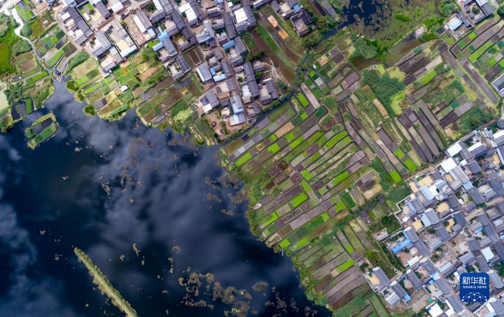 這是9月28日拍攝的洱源西湖島上的田園景觀(guān)(無(wú)人機照片)。