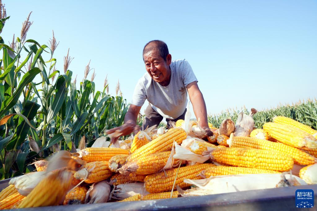 9月29日,在山東省樂(lè )陵市蘆庵村,村民在收獲玉米。