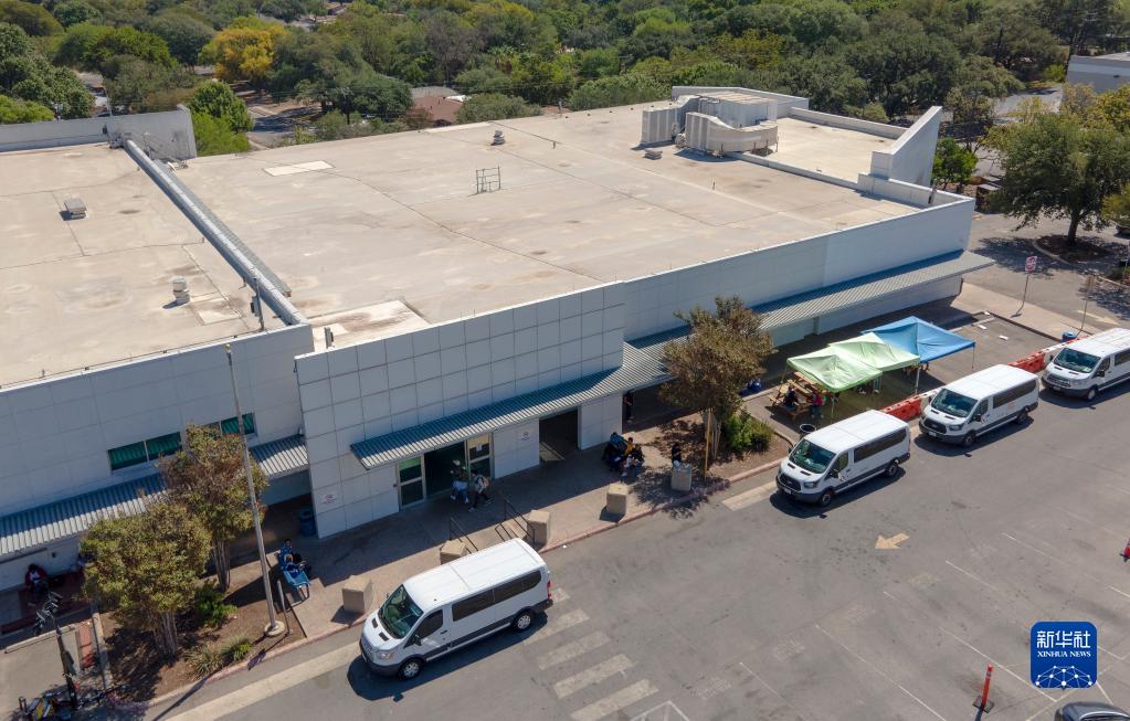 這是9月30日在美國得克薩斯州圣安東尼奧拍攝的轉送移民的車(chē)輛。
