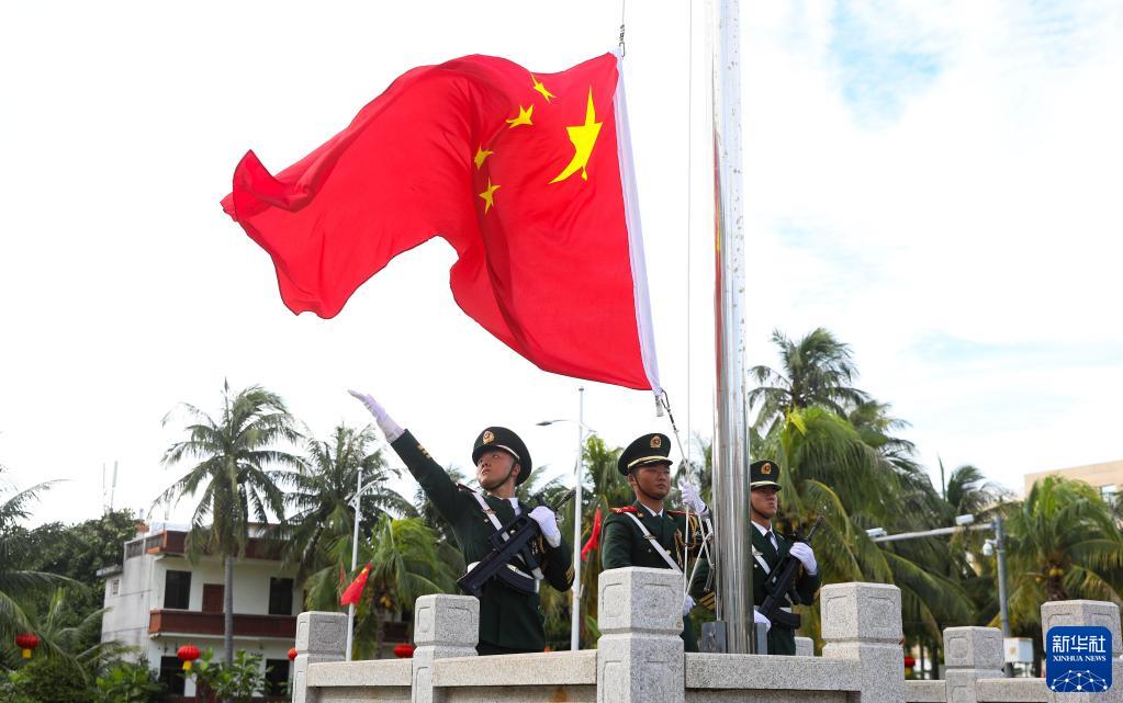 10月1日,海南省三沙市在永興島舉行升國旗儀式。