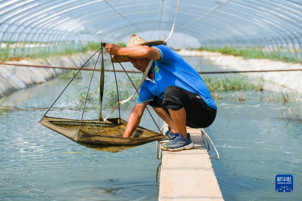 8月25日,在地處黃河岸邊的內蒙古烏海市海南區巴音陶亥鎮的鹽堿水對蝦養殖園區,工作人員在查看對蝦生長(cháng)情況。鹽堿地變對蝦田,不僅提高了鹽堿地的利用率,也將帶動(dòng)當地村民致富。