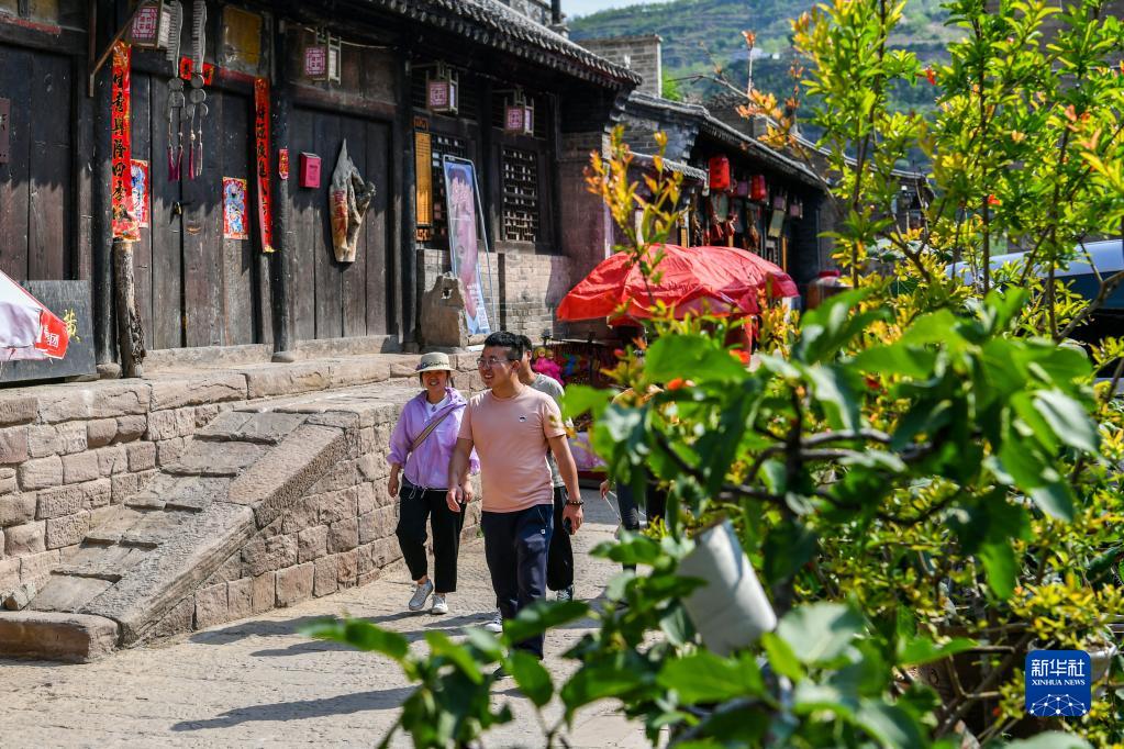 5月25日,游客在被譽(yù)為“九曲黃河第一鎮”的山西省呂梁市臨縣磧口古鎮游玩。