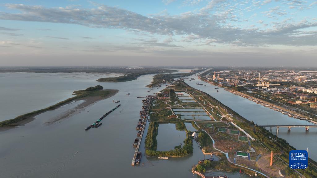 9月26日拍攝的江蘇省淮安市洪澤湖大堤生態(tài)修復城區段(無(wú)人機照片)。