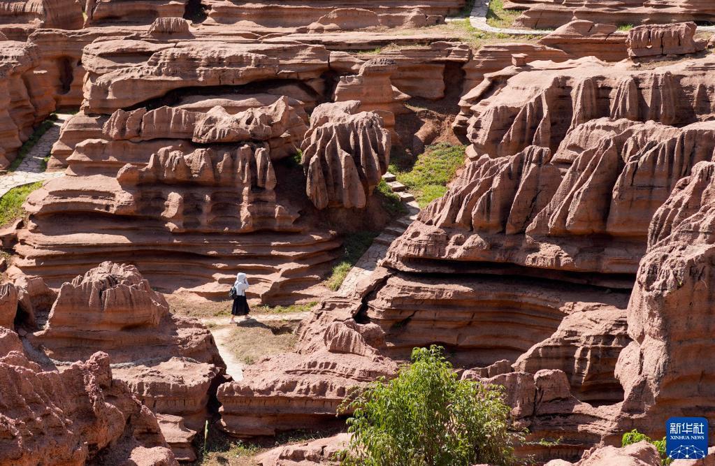 10月3日,游客在紅石林地質(zhì)公園內參觀(guān)游覽。