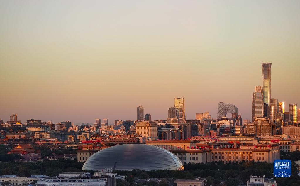 這是10月4日拍攝的夕陽(yáng)下的北京建筑群。