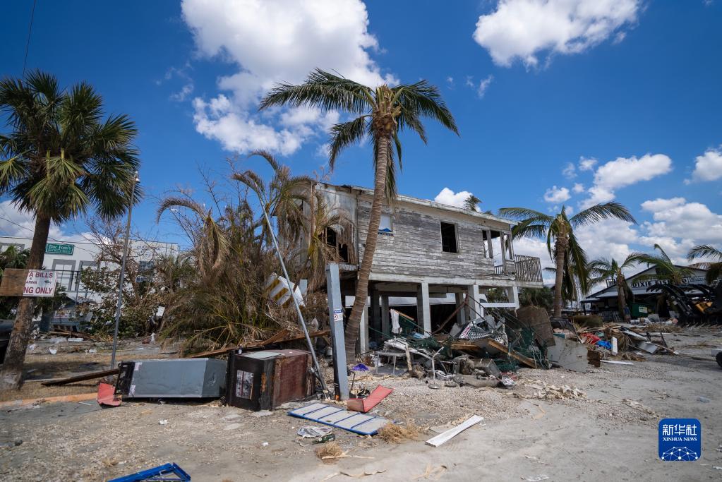 這是10月4日在美國佛羅里達州邁爾斯堡拍攝的遭颶風(fēng)“伊恩”破壞的建筑。
