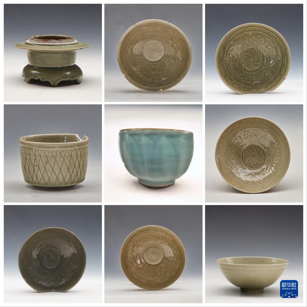 這是溫州朔門(mén)古港遺址發(fā)掘出的龍泉窯瓷器(拼版照片)。