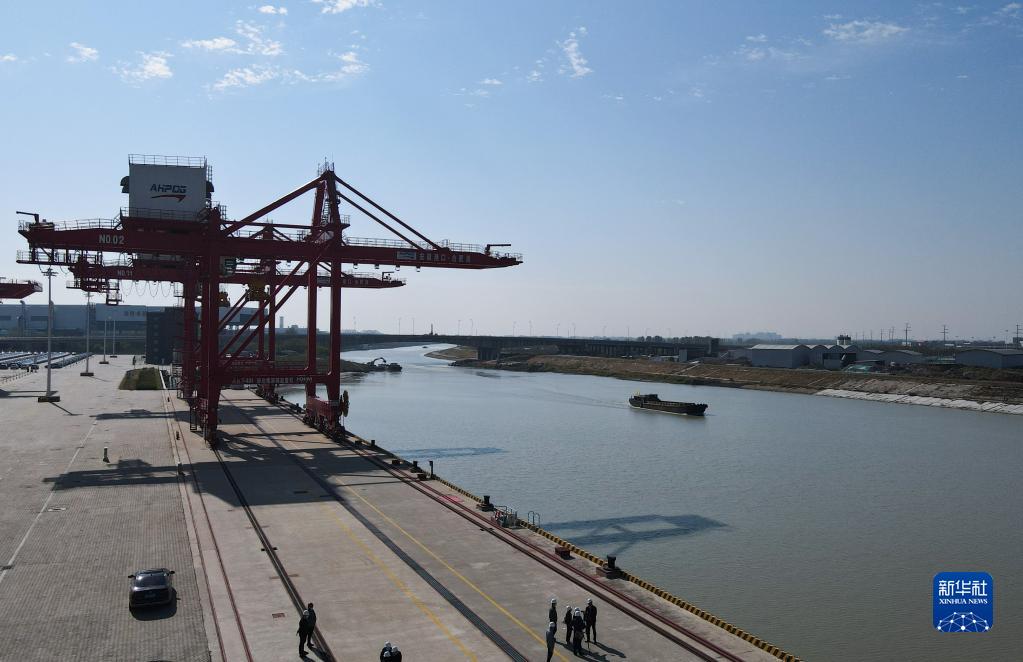 這是10月11日拍攝的安徽合肥派河國際綜合物流園港區碼頭(無(wú)人機照片)。