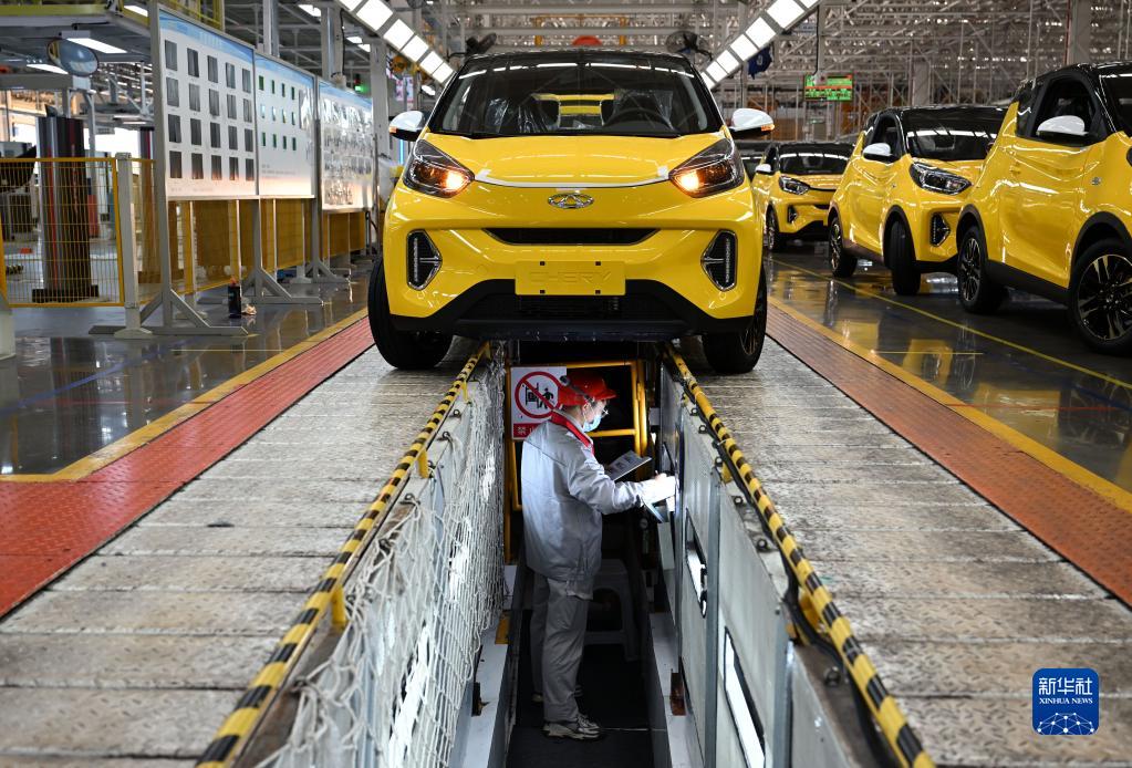 10月12日,在位于蕪湖市的奇瑞汽車(chē)股份有限公司新能源二期工廠(chǎng),工作人員在總裝車(chē)間忙碌。