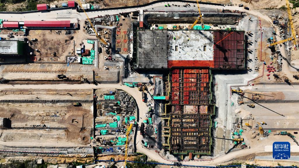 10月13日,工人在建設玉林北站站房(無(wú)人機照片)。