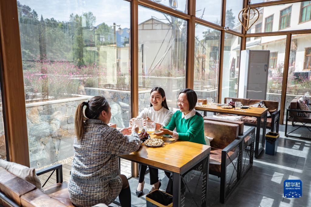 10月13日,在重慶市巫溪縣通城鎮龍池村,游客在村內的一家啤酒餐廳休閑小憩。
