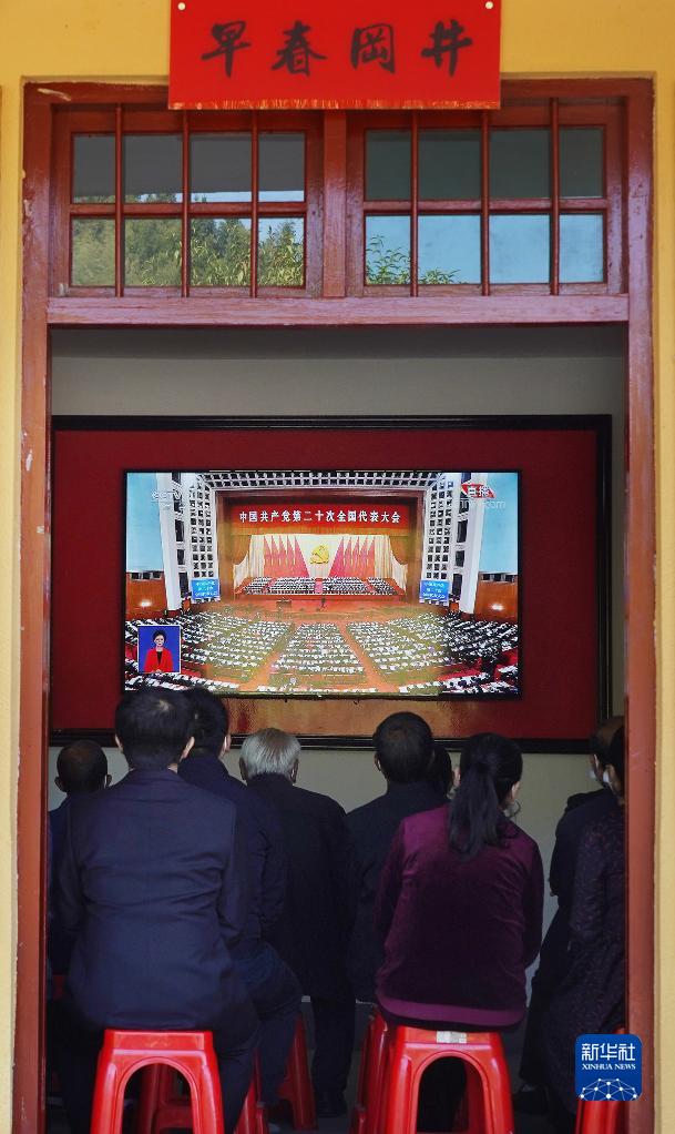 10月16日,江西省井岡山市茅坪鎮神山村村民在村委會(huì )收看中國共產(chǎn)黨第二十次全國代表大會(huì )開(kāi)幕會(huì )。