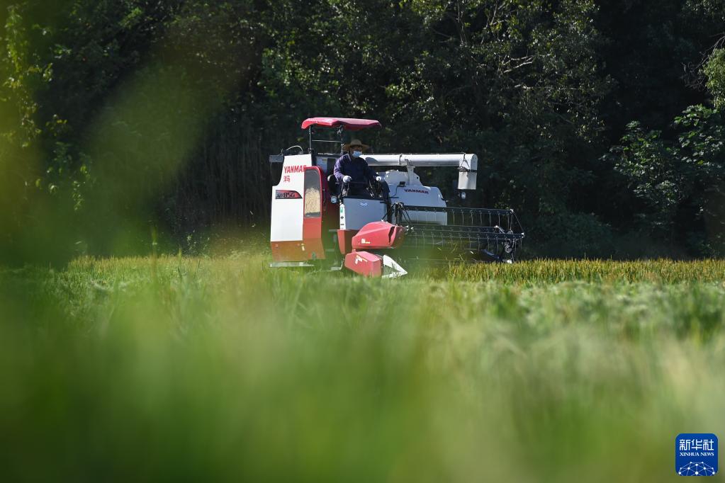 近日,浙江省湖州市吳興區八里店鎮種植的水稻迎來(lái)收獲季節,農戶(hù)操作收割機在稻田里作業(yè),呈現一幅幅美麗的豐收圖景。