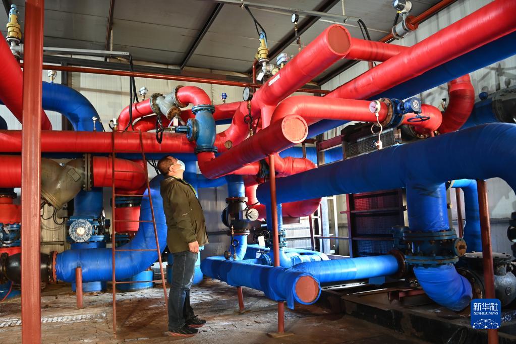 10月20日,在黑龍江省哈爾濱市呼蘭區一家供熱企業(yè),工作人員在換熱站內查看儀表數據。