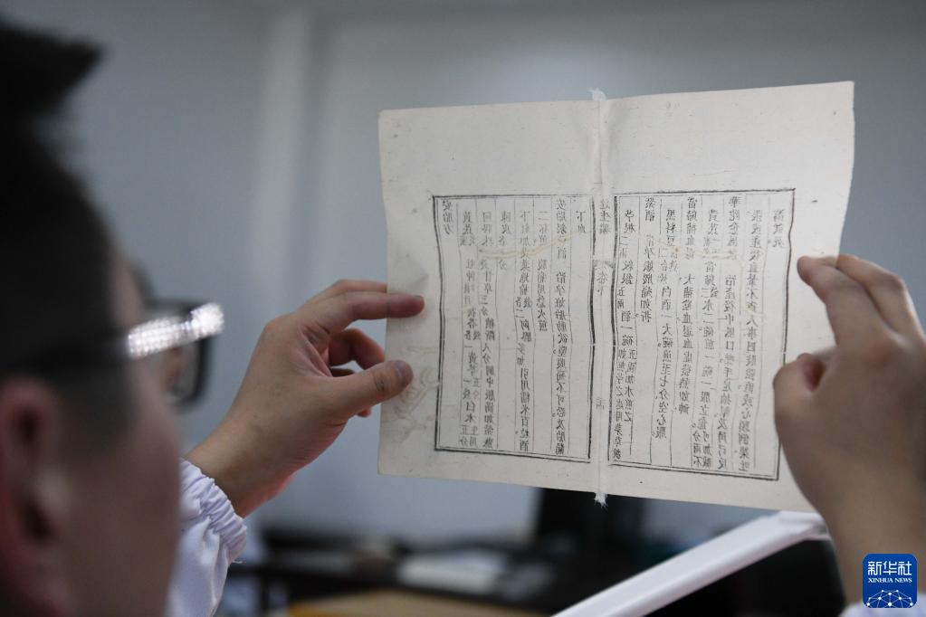 10月20日,在安徽中醫藥大學(xué)圖書(shū)館古籍部,古籍修復師茆可人進(jìn)行古籍修復。