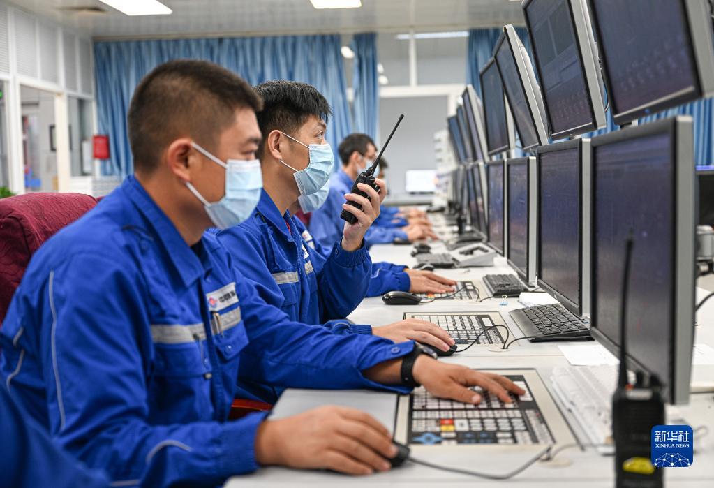 工作人員在海南東方臨港產(chǎn)業(yè)園海洋石油富島有限公司中控室作業(yè)(10月20日攝)。