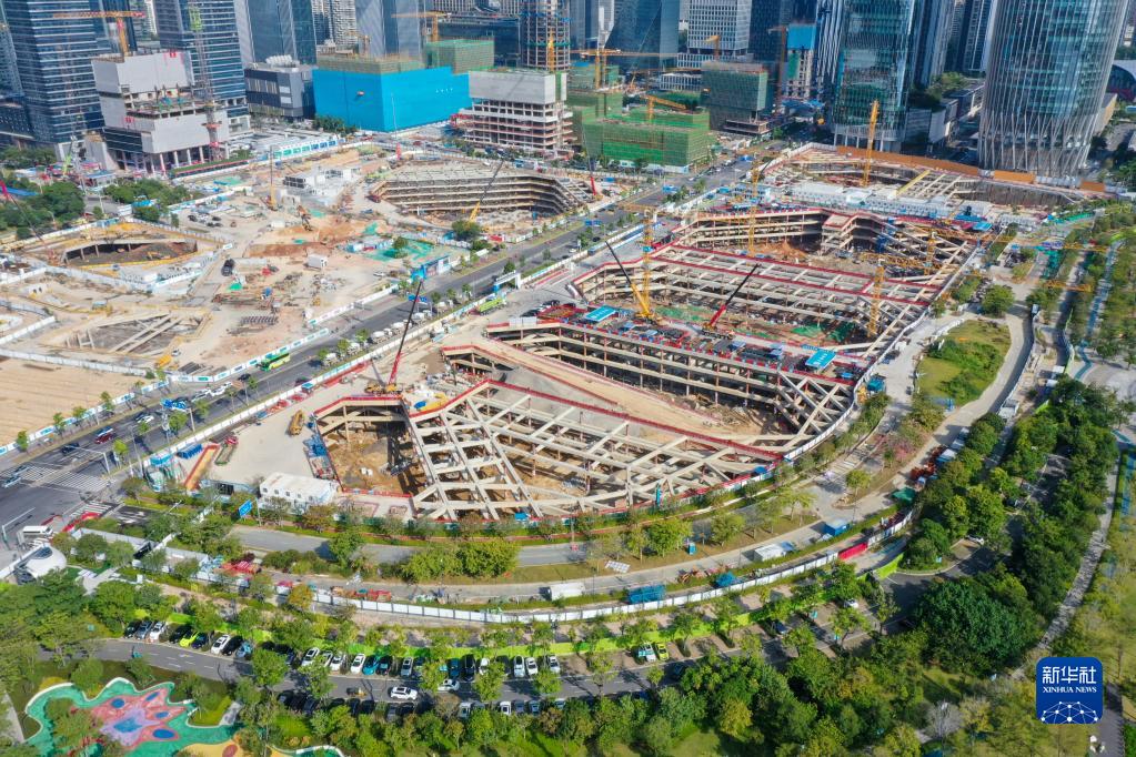 建設中的深圳灣文化廣場(chǎng)(10月25日攝,無(wú)人機照片)。