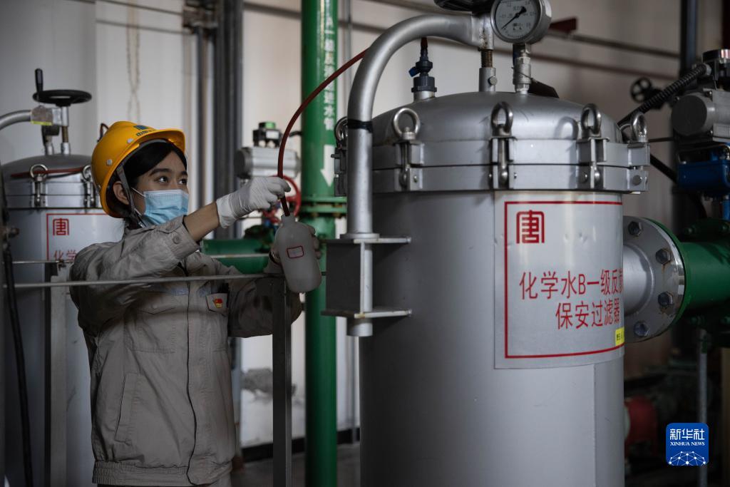 10月24日,在大唐綏化熱電有限公司供熱車(chē)間內,化驗員張馨月在進(jìn)行水質(zhì)采樣。