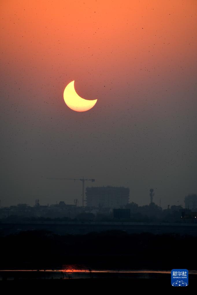 當日,一場(chǎng)日偏食景觀(guān)現身天宇,歐洲、非洲東北部、亞洲西部等地區可見(jiàn)。