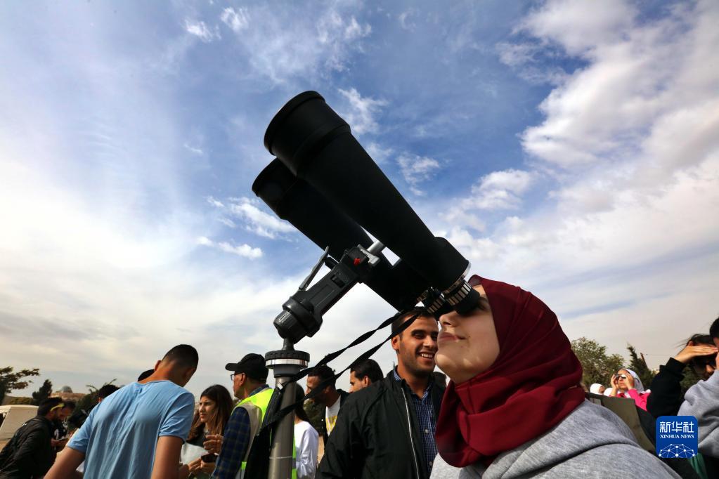 10月25日,一名女子在約旦首都安曼的城堡山上觀(guān)看日食。