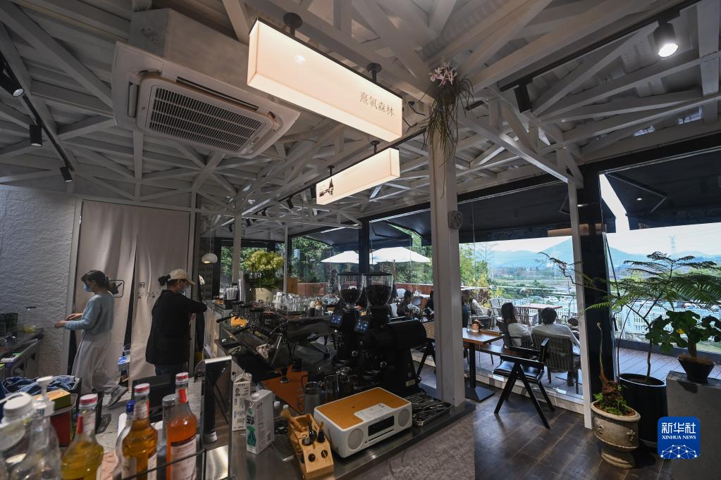 10月26日,依托廢棄礦坑建成的紅里山村熹氧森林西餐廳吸引了不少市民、游客前來(lái)消費體驗。