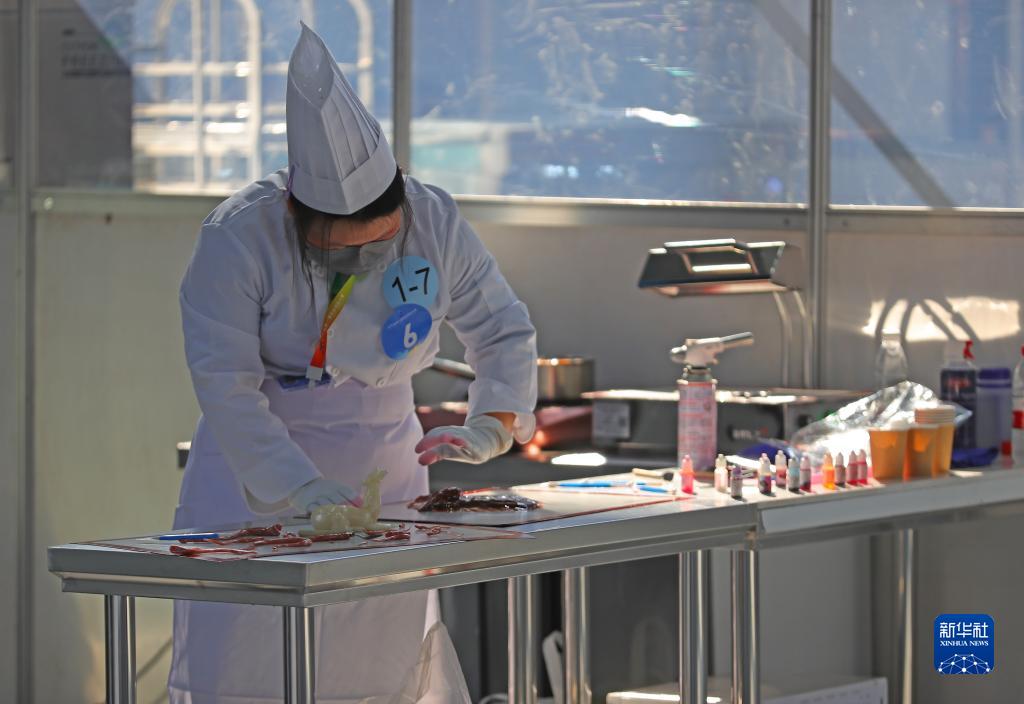 10月27日,參賽選手參加糖藝/西點(diǎn)制作項目比賽。