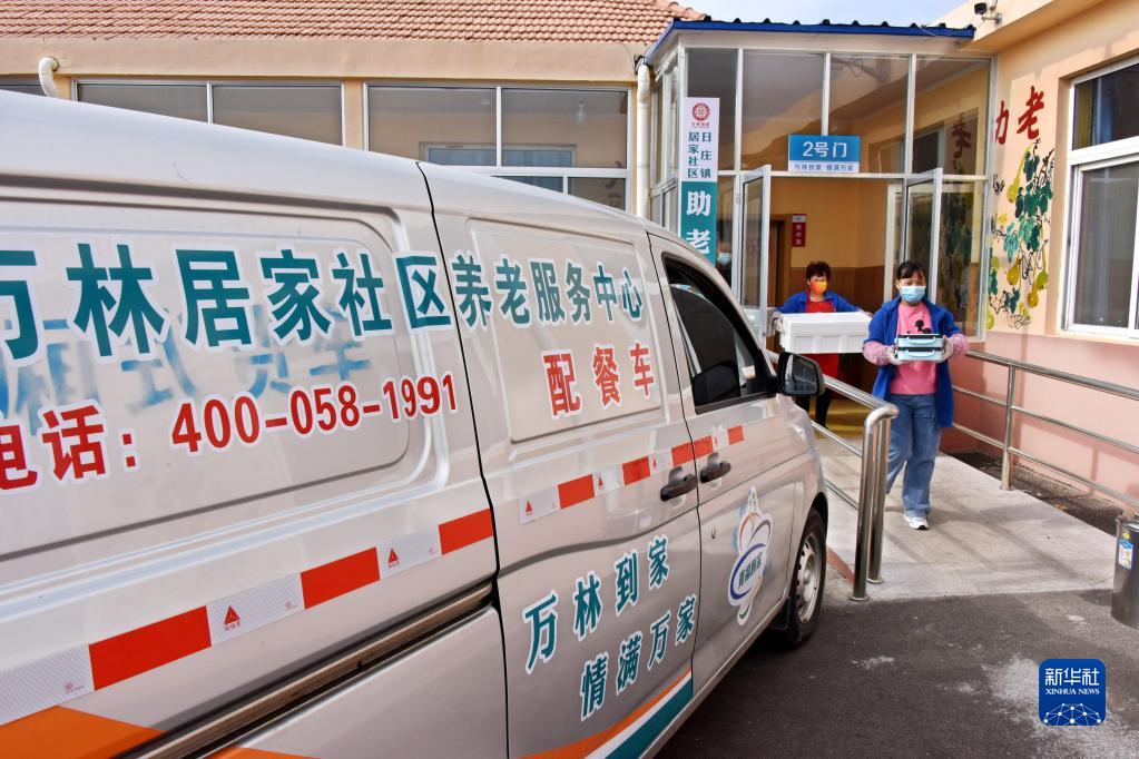 10月26日,在青島萊西市日莊鎮萬(wàn)林居家社區養老服務(wù)中心,工作人員準備前往各村送餐。