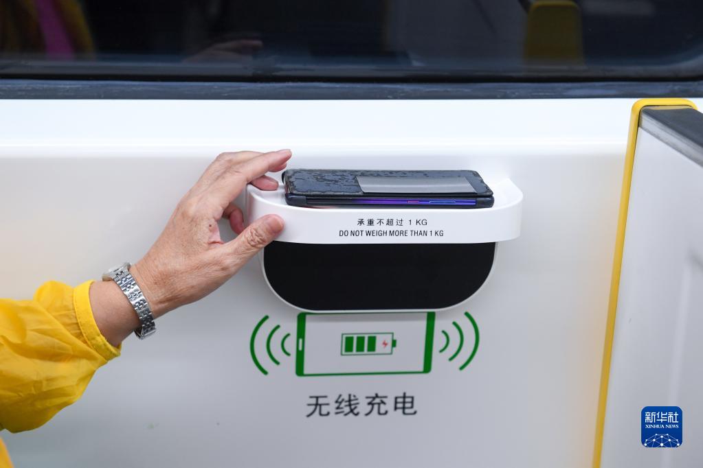 10月28日,市民體驗深圳地鐵14號線(xiàn)列車(chē)內的無(wú)線(xiàn)充電功能。