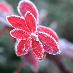 10月16日,在云南省迪慶藏族自治州香格里拉市建塘鎮,植物葉子上掛著(zhù)白霜。