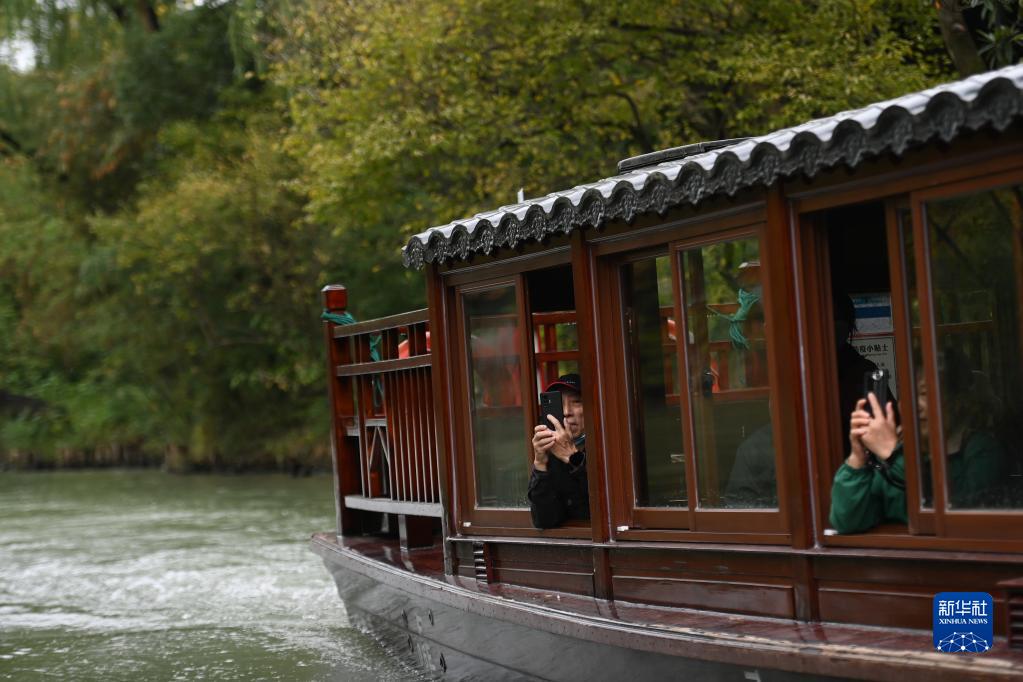 10月28日,游客乘坐電瓶船在西溪國家濕地公園觀(guān)光。