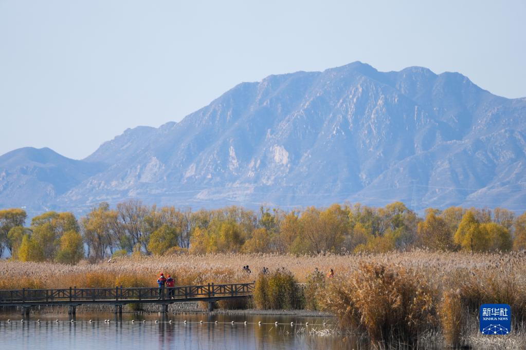 游客在北京野鴨湖國家濕地公園內參觀(guān)游覽(11月1日攝)。