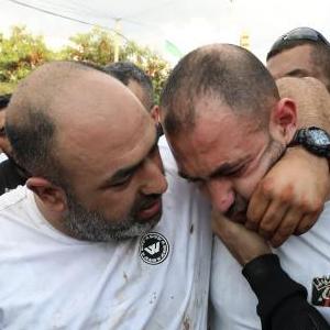 11月3日,在約旦河西岸北部城市杰寧,人們參加被以色列軍隊打死的巴勒斯坦人的葬禮。