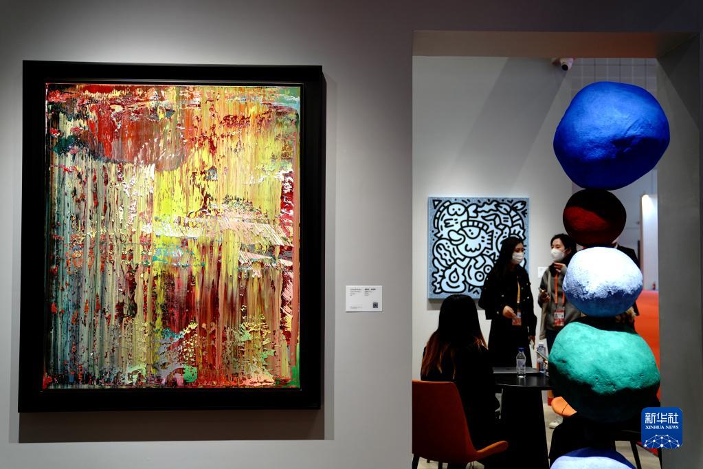 11月5日,參觀(guān)者在第五屆進(jìn)博會(huì )消費品展區一家藝術(shù)品經(jīng)營(yíng)機構洽談。