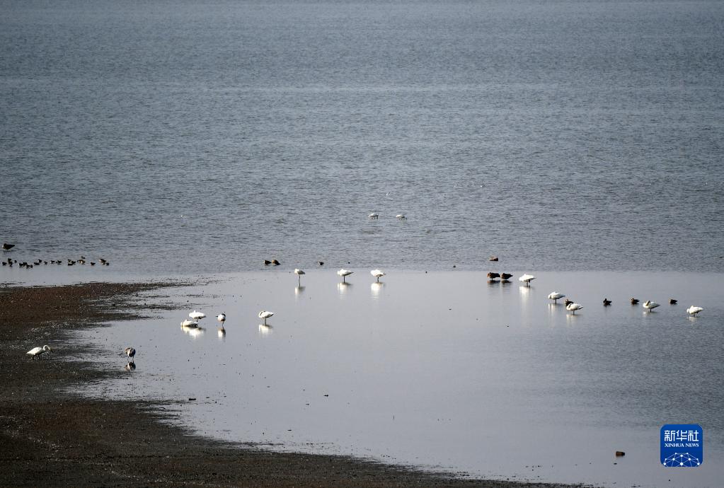 鳥(niǎo)類(lèi)棲息在沉湖濕地內(11月6日攝)。