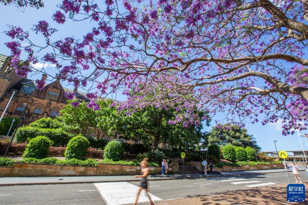 這是11月8日在澳大利亞悉尼大學(xué)拍攝的盛開(kāi)的藍花楹。