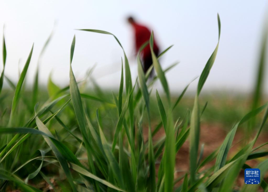 11月8日,在山東省臨沂市平邑縣地方鎮東家莊村,村民在田間管護小麥。