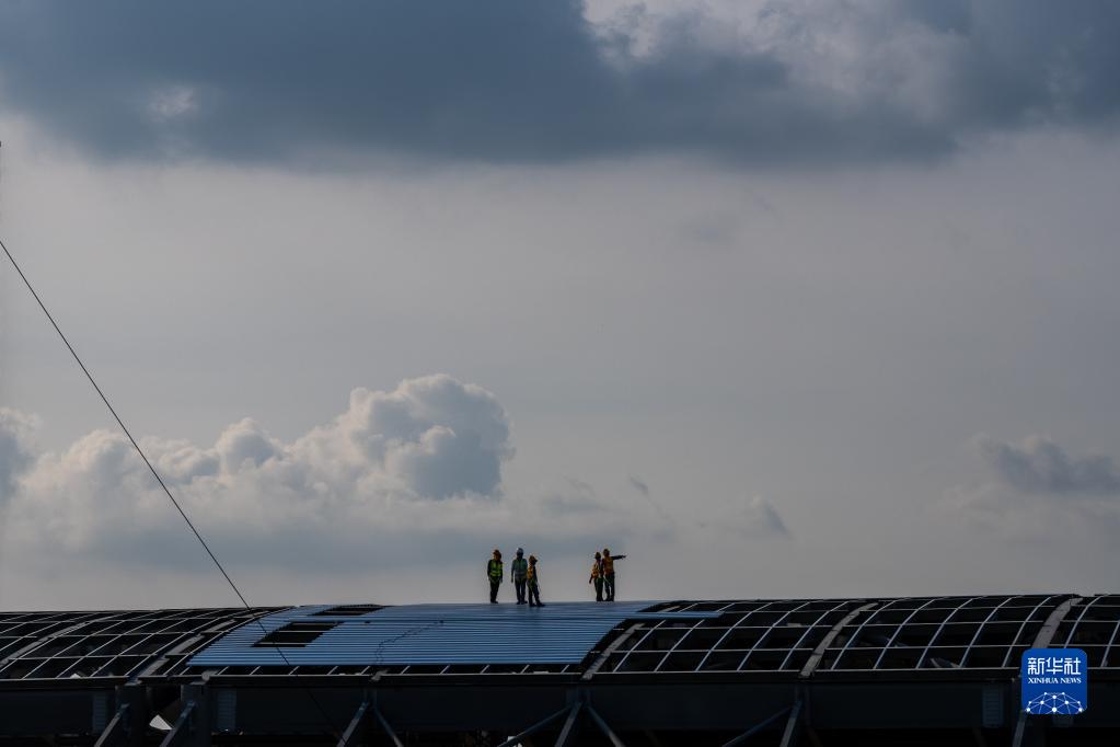 11月8日,工人在柬埔寨新金邊國際機場(chǎng)項目施工現場(chǎng)工作。