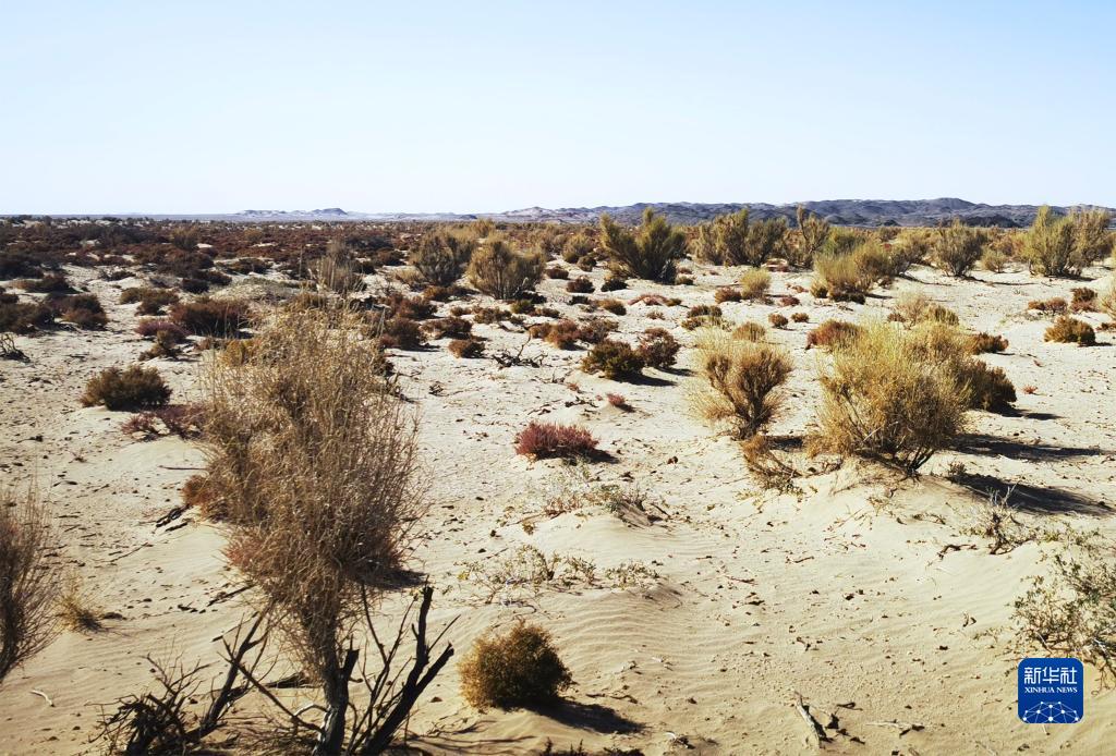這是內蒙古巴彥淖爾市烏拉特后旗巴音查干嘎查牧民種植的梭梭(11月4日攝)。