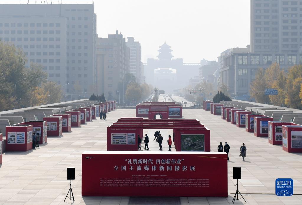 這是11月10日在中華世紀壇拍攝的“禮贊新時(shí)代 再創(chuàng )新偉業(yè)”全國主流媒體新聞攝影展現場(chǎng)。