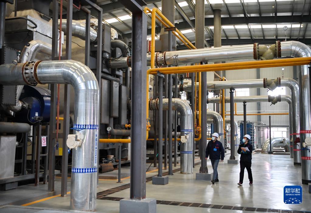 11月10日,在石家莊市一家供熱企業(yè),工作人員在運行車(chē)間內巡查。